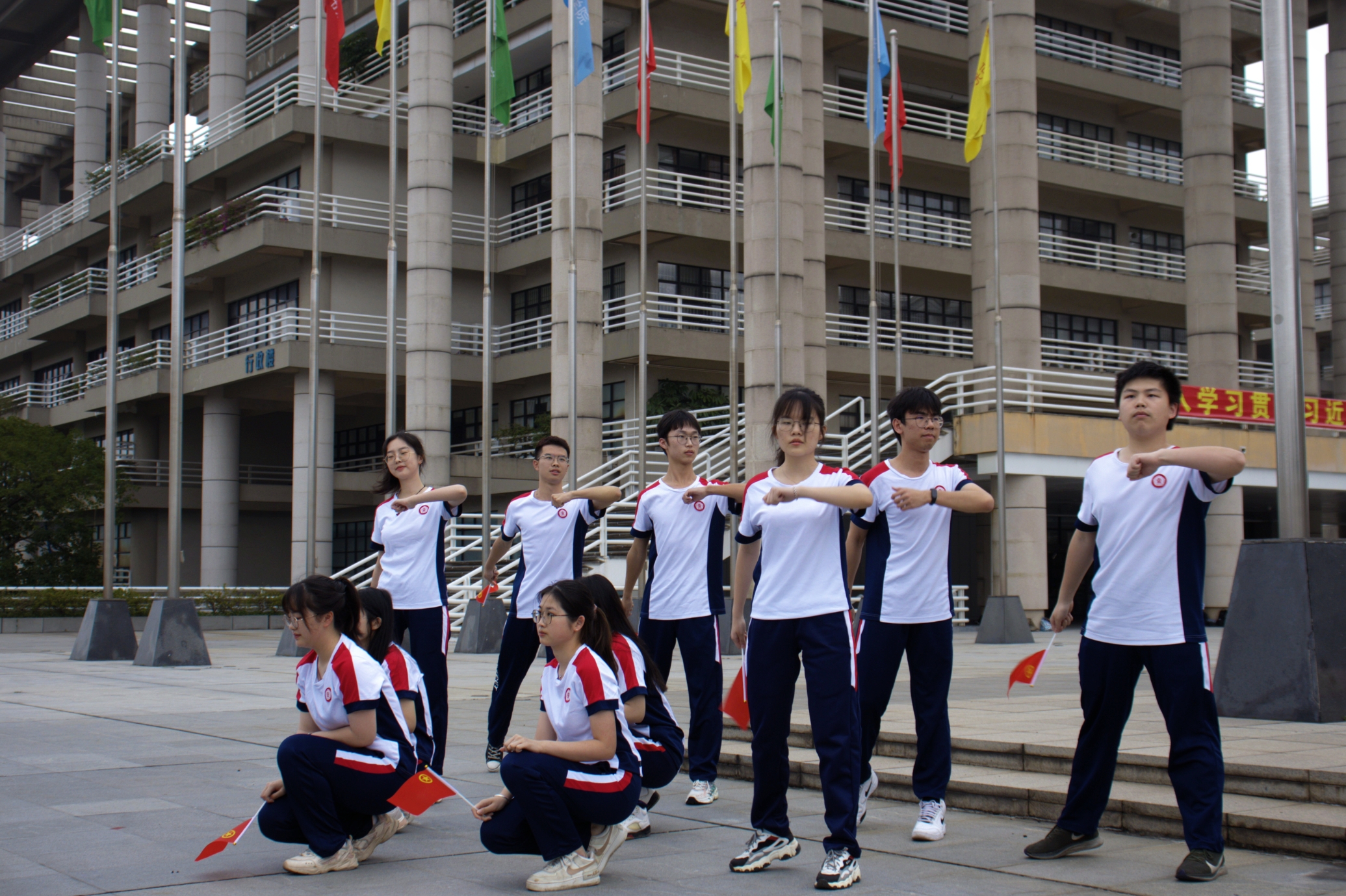随后,学生代表马嘉智同学带领全体同学向国旗庄严宣誓,同学们的铮铮誓言响彻长空,彰显着青年学子的赤诚之心,昂扬之姿,奋进之势。最后,学生代表表演旗帜舞《我们都是追梦人》,朗诵《逐梦六十五载》并合唱校歌《逐梦》以献礼学校本科办学65周年。在同学们整齐划一的舞蹈、铿锵激昂的歌颂和悠扬动人的旋律中,本次升旗仪式缓缓落下帷幕。