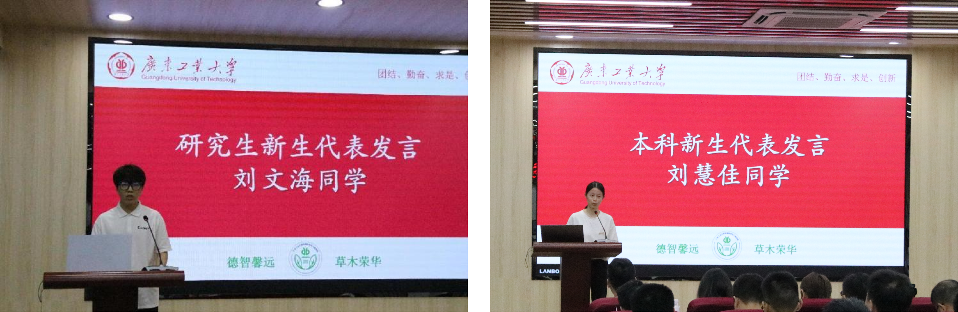 2023级研究生代表刘文海同学在大会上作新生代表发言,他表达了对未来在校学习生活的无限期待,并强调了对接下来的科研学习的坚定决心与顽强毅力,号召同学们尽快融入校园,积极参与科研,为绿色梦想贡献青春力量。本科新生代表刘慧佳以“往事与今昔齐飞,未来共长天一色”为题,分别从己、师、友三个维度呼吁大家要不忘初心,团结友爱,尊师重道,让青春之花绽放得更加绚丽灿烂。