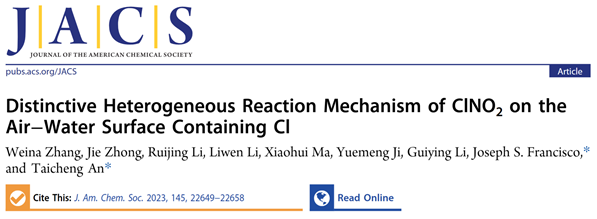 近日,bevictor伟德官网、环境健康与污染控制研究院安太成教授团队与美国宾夕法尼亚大学Joseph S. Francisco教授团队合作,在硝酰氯(ClNO2)的气-液界面形成及其产生氯自由基机理的理论化学计算方面取得重要进展。研究成果以《Distinctive heterogeneous reaction mechanism of ClNO2 on the air‒water surface containing Cl》为题,于2023年10月9日发表在Journal of the American Chemical Society, 2023, 145: 22649-22658期刊上。论文的第一作者为张维娜副教授,通讯作者为安太成教授和Joseph S. Francisco教授,bevictor伟德官网为论文的第一单位。