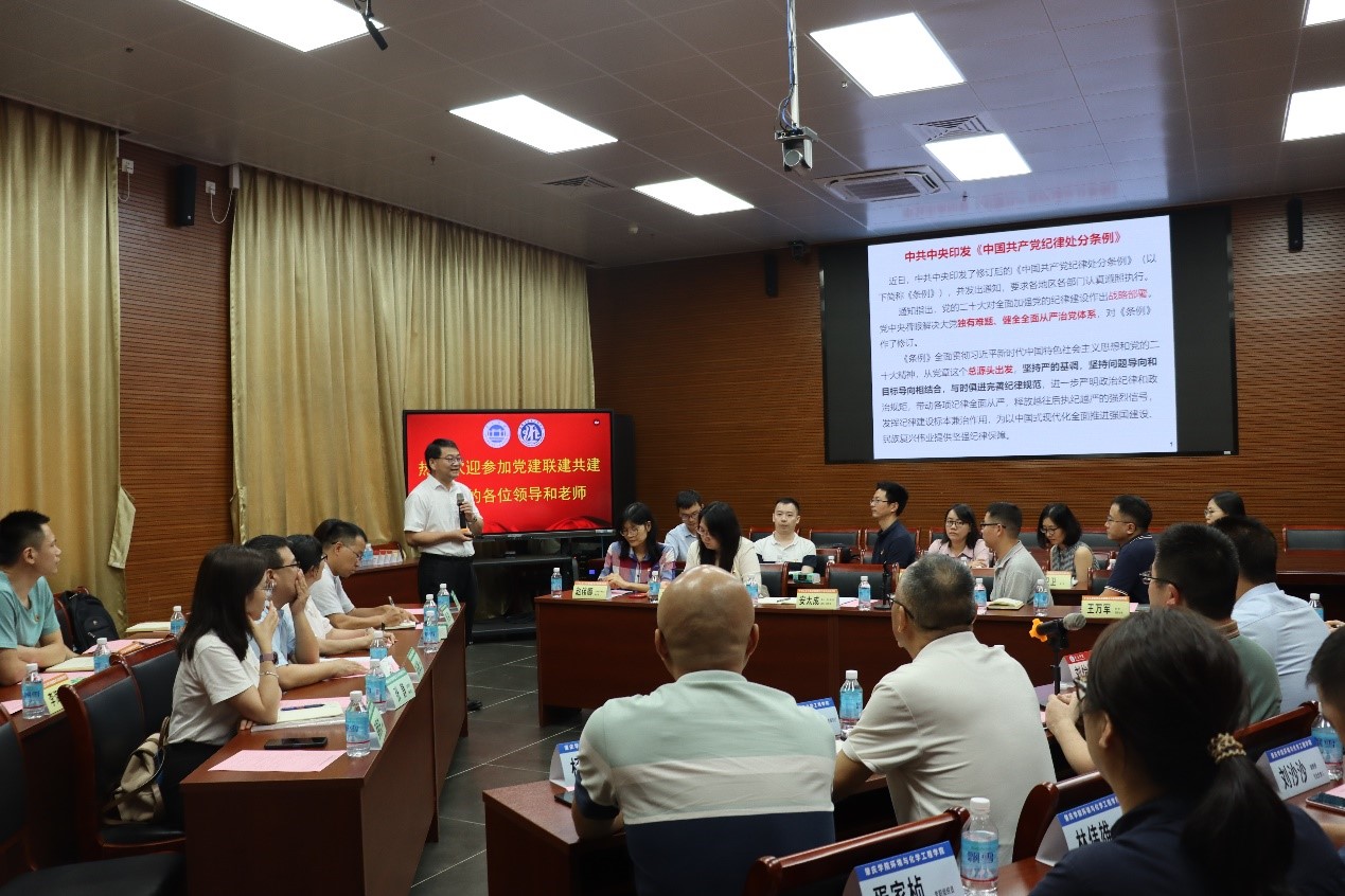 随后,安太成教授带领大家学习了新修订的《中国共产党纪律处分条例》,要求党员们切实把自己摆进去,强化自我约束,始终保持干净底色,不断强化担当作为。支部副书记高艳蓬分享了党建工作经验与成效。并介绍了bevictor伟德官网环境健康与污染控制研究院党支部。党支部自2016年4月成立以来,以人才培养为中心,抓住关键的发展机遇,实现党建与业务工作同频共振。安太成教授表示本次活动的初衷是希望通过三方党支部共建共促共融,充分发挥高校和科研院所优势,携手实现互帮互助、共同发展的良性共建格局。