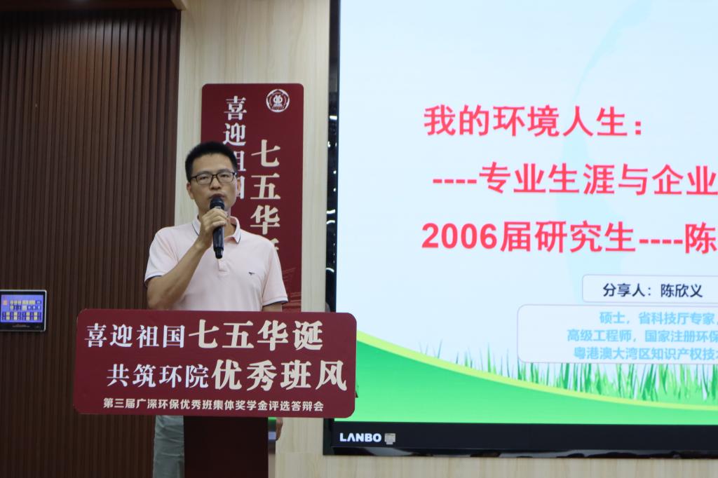 陈欣义校友现任广东广深环保科技股份有限公司总经理,回顾起自己的大学生活和创业经历,仍然感慨万千。从孤军备考到独身创业,从苦读专业书籍到钻研技术难关,陈欣义校友表示,困难层出不穷但只要努力就会有收获。“时常给自己设立小目标,争取每天都有所收获,有所进步”陈欣义校友鼓励在场同学们,在日常的学习生活中做个自信、自律、自强的人,不断培养自己坚强的意志力、坚韧力、自制力。在成长的风雨中坚定梦想,在时代的浪潮中抓住机遇,“困难常有,逆境常在,但只要保持‘咬定青山不放松’的韧劲,终会有所收获”。
