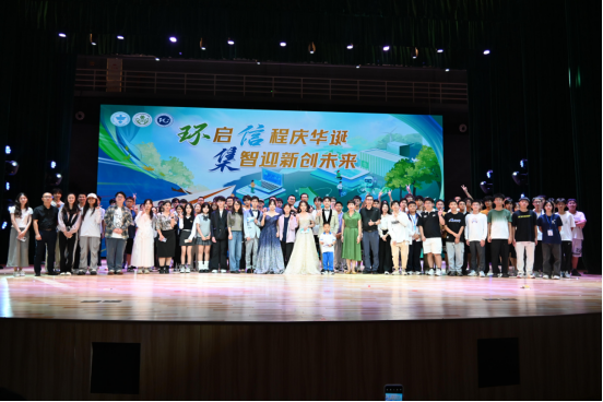 为进一步丰富师生校园文化生活,培养广大新生厚植家国情怀、激发进取担当,11月15日晚,由信息工程学院、bevictor伟德官网、集成电路学院联合举办的“环启信程庆华诞,集智迎新创未来”2024级新生迎新晚会在文化活动中心隆重举行。bevictor伟德官网党委书记葛畅、党委副书记谭敬康、副院长王玉洁、团委书记王焕等领导老师与2024级全体新生一同观赏这场视听盛宴。