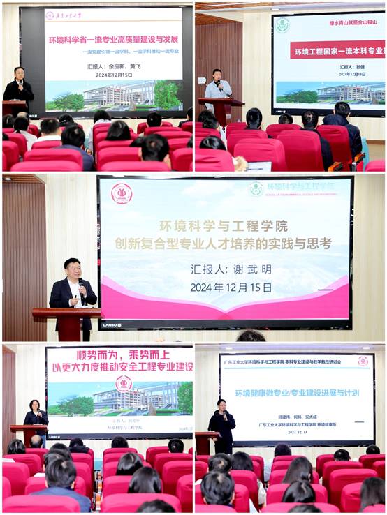 随后,学院专业各系根据自身建设发展需求与对应专家进行深入交流。会议设置了环境工程系、环境科学系和安全工程系三个分会场,专家们不仅指出了学院在教学教改中的实际问题,还分享了前沿的教育理念与发展思路,为学院未来的改革与发展提供了宝贵的参考与启示。