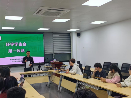 会议伊始,学生会全体成员集体学习2025年全国两会精神,重点聚焦就业、经济、民生、消费增长、数字化发展及绿色低碳转型等议题。与会成员结合学生会工作实际展开讨论,提出将“服务同学成长”与“助力绿色校园建设”深度融合,在后续活动中融入低碳理念,打造环境学科特色品牌。