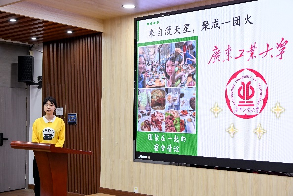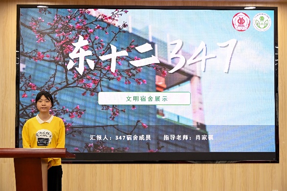学院特邀校“十佳文明宿舍”东十二347宿舍为大家进行展示。在展示中,宿舍成员四人四色,尽管来自不同的地方,但她们契合的缘分妙不可言,宿舍关系融洽,成员思想觉悟高,既有学习标杆、疯狂创客,又有实践志愿达人和多才多艺的浪漫诗人,让人眼前一亮。朱柔蜜、旦增措姆同学分享了她们成功的秘诀——“散是满天星,聚是一团火”这一宿舍概念启发了她们不断完善细节挖掘亮点、突破更好的自己。