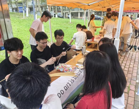 活动现场还设置了非遗工艺的体验环节,让同学们能够上手欣赏研究,不少学生驻足体验。“第一次尝试竹编,看似简单却需要极大的耐心,深刻体会到非遗传承人的匠心精神。”参与活动的李同学表示。刘同学也感叹道:“这次活动趣味十足,各种体验活动与知识科普让我感受到了非遗的魅力,同时也收获了环境保护的知识。期待以后更多能够让我们在玩中收获知识的趣味活动。”