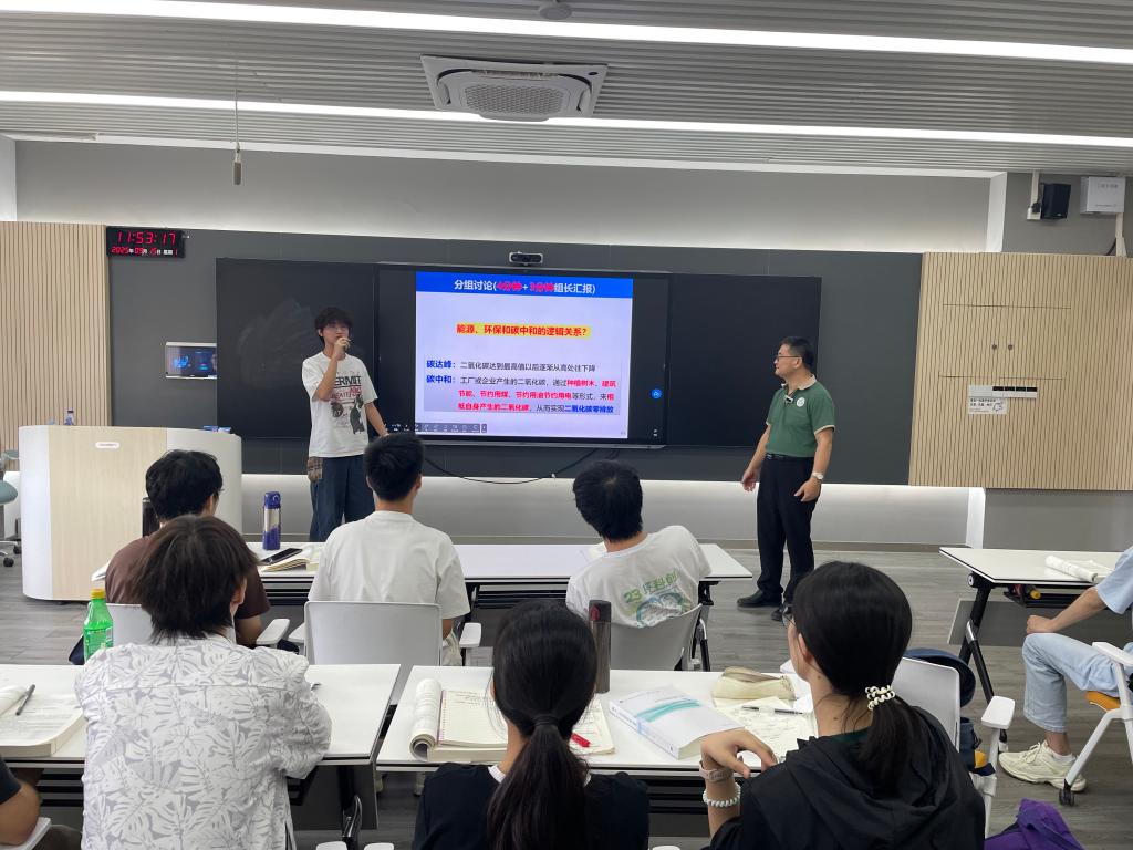 本次课程主题“燃烧与大气污染”。安太成老师首先从生活用煤等不同燃料引入燃烧内容,以燃料性质、热值差异与污染物产生等视频播放激发学生兴趣,快速进入学习状态;采用不同油品热值、汽车排量、燃烧方式和污染物产生引入燃烧污染控制主题,进一步明确课堂教学目标;介绍上次课程布置的思考问题与本次课程内容的关系,有效衔接课程章节内容,并提出本次课的后段需要讨论的主题“能源、环保和碳中和的逻辑关系”,让课程内容逻辑和课堂思考贯穿整个教学过程,提高学生的课堂专注力;结合典型视频教学实例、国际能源危机、污染控制策略与大国战略,将思政元素融入教学内容之中,启发学生课堂上深度思考与理解国家发展大战略;组织课堂讨论分组,引导思考主题角度,学生讨论气氛热烈、组长汇报见地突出、教师总结深入浅出,教师知识与价值输入和学生思考和素养输出形成课堂教学闭环;最后在梳理课程内容的基础上,明确下次课程与本科程的联系,安排课后复习总结和作业及预习要求,强化了课程教学内容的系统性和整体,引导学生循序渐进。