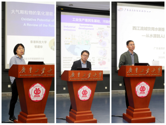 会议学术报告环节首先赵惠军院士主持,郁建珍教授、刘国瑞教授和余胜兵副所长分别以“大气颗粒物的氧化潜能:金属-有机相互作用的角色评述”、“工业源细颗粒物中新污染物排放清单与暴露风险”和“西江流域饮用水新烟碱暴露及人群健康效应——从水源到人群的健康风险解析”为主题进行了精彩的学术分享。
