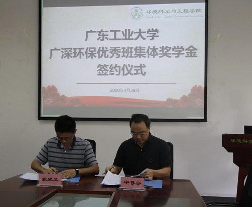 宁寻安院长和陈欣义总经理代表双方共同签署了《bevictor伟德官网教育发展基金会接受捐赠协议书》。根据协议,广东广深环保科技有限公司每年向学院捐赠5万元(连续五年)设立“广深环保优秀班集体奖学金”,奖励对象为bevictor伟德官网大二、大三及大四年级优秀班集体。