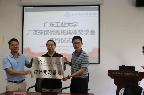 最后宁寻安院长代表学院为广东广深环保科技有限公司颁发校外实习基地牌。