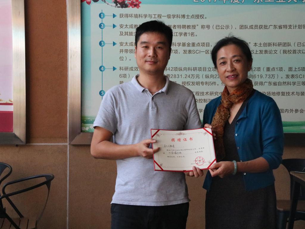 在仪式现场,93级校友代表李朝晖、安太成教授代表陈江耀向我院捐赠书籍、咖啡机及桌椅,校友办主任王玲向捐赠代表颁发捐赠证书并表示感谢。李朝晖校友代表发言,此次捐赠希望能帮助学院打造特色学习园地,丰福师生课后生活,营造浓郁的书香氛围。学院应抓住习近平总书记考察广东的大好时机,在基础建设、人才引进、科研管理等各方面,大胆改革创新。李朝晖校友承诺,此次捐赠只是一个开始,93级环境工程专业的校友会把捐赠平台一直经营下去,不断加强校友与学院的合作交流,为学校、学院的建设贡献一份力量。