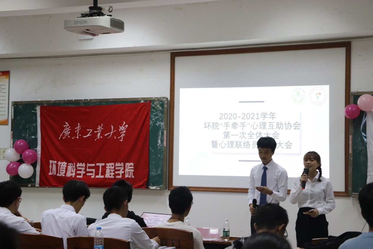 10月25日晚,我院“手牵手”心理互助协会第一次全体大会暨心理联络员培训大会在工学馆3号楼208室举行。院学生会负责人林泽昊,心协前任负责人罗立铭以及机电工程学院心协负责人彭安荣出席本次会议。