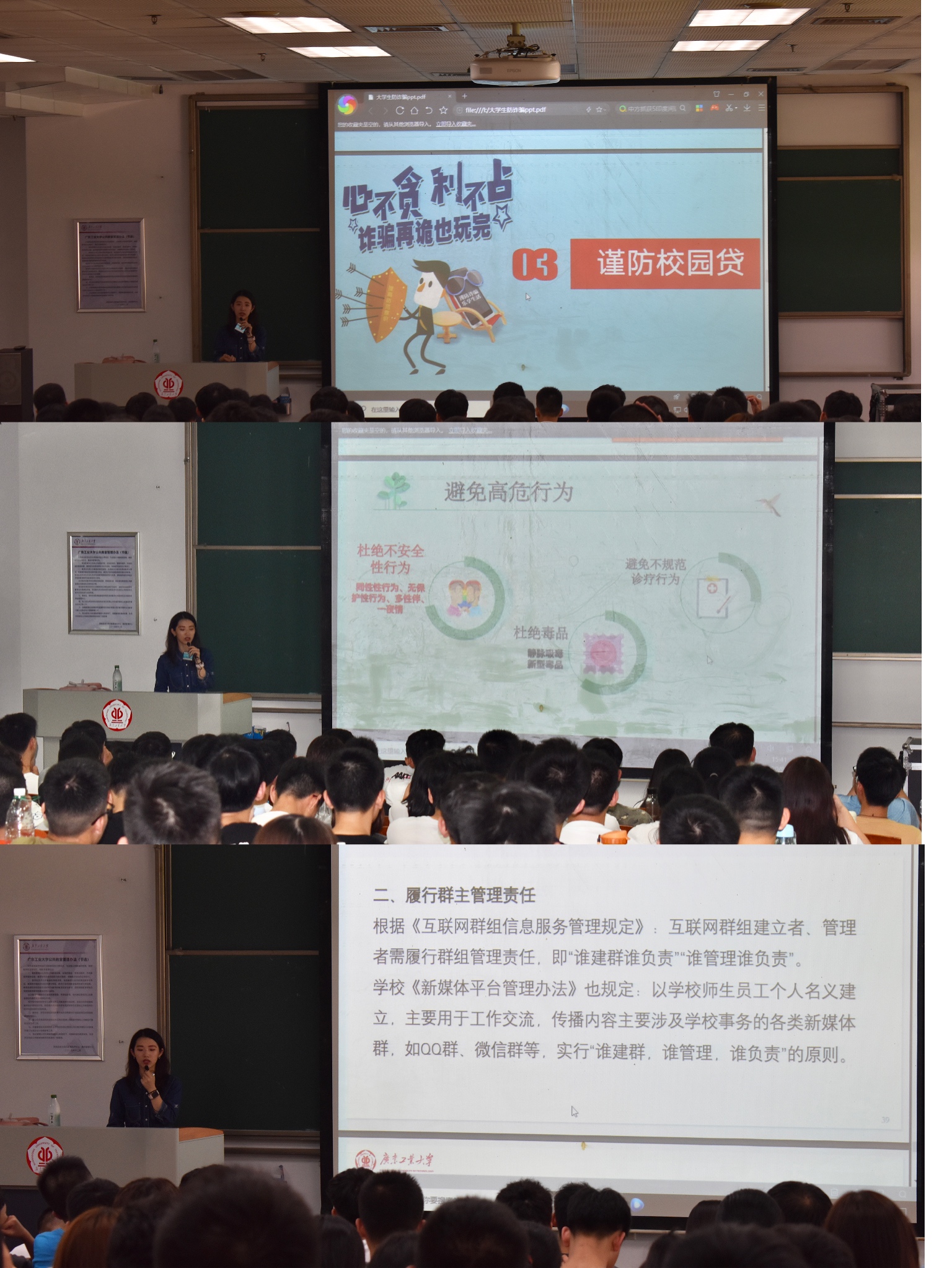 9月13日,为了让刚进校的新生树立安全意识,2020级本科辅导员张珂通过与新生的见面会,先后向新生普及网络安全教育、青春健康知识和金融防骗教育。通过向新生介绍国家网信办和学校发布管理规定和办法,辅导员张珂对网络行为规范进行详细讲解。辅导员张珂提醒新生在创建个人的新媒体平台要遵循《bevictor伟德官网新媒体平台管理办法》、履行群主管理责任、严守网络管理规定。辅导员张珂在青春健康知识的宣讲中,以《艾滋在身边 青春须设防》为主题,围绕艾滋病是什么、在哪里、有什么危害、怎么预防等方面展开,指出身体的健康也是学校安全和谐的保障,提醒新生掌握正确的青春健康知识,避免高危行为,拒绝毒品。为进一步有效防止校园电信诈骗的发生,提高新生对电信诈骗手法的识别和防范能力,辅导员张珂老师结合最近大学生身边的电信诈骗典型案例,对电话类诈骗、聊天软件诈骗、网络类诈骗、冒充公检法或银行客服诈骗、爱心传递或恋爱诈骗、校园贷等做了详细讲解,告诫新生要树立正确对金钱观消费观、吸取他们对教训、提高防骗能力、强化防范意识。