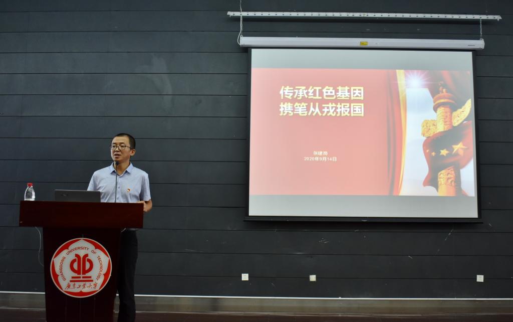 9月14日,团委书记张建岗老师为新生作了一场《传承红色基因 携笔从戎报国》的讲座。讲座围绕新时代习近平总书记对新形势下的强军目标,解释了强军之路必须要贯彻执行的“四个坚持”和“五个注重”。通过展示朋辈军人“沙场之花”的袁远、“最美退役军人”宋玺、“广工士兵”李磊的履历,激发新生会从军的渴望与向往。张建岗老师详细梳理了大学生当兵的优抚政策、征兵入伍的条件要求和报名程序、咨询方式,进一步打消了新生对征兵的顾虑,提高大学生对征兵的认知,调动了新生应征入伍的热情。