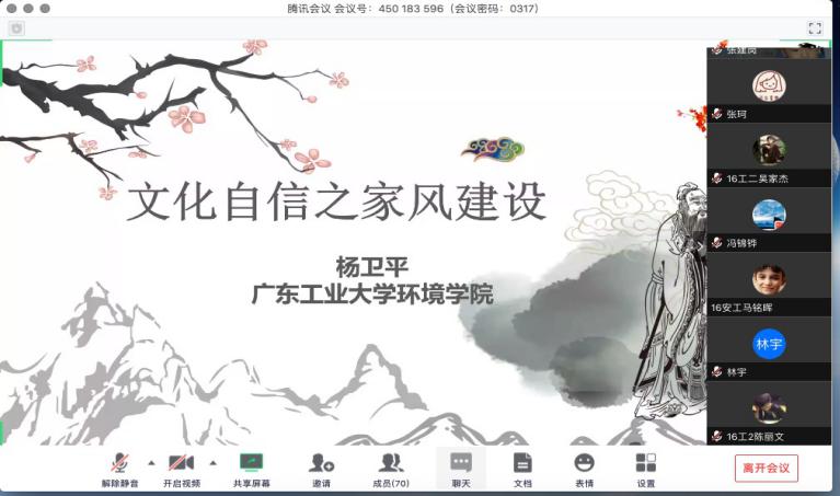 为深入贯彻落实习近平总书记关于“注重家庭、注重家教、注重家风”的重要讲话精神,我院于3月17日下午在线上开展《文化自信之家风建设》的主题研习活动。学院党委书记杨卫平担任此次研习小组的主讲嘉宾,各年级辅导员和全体本科生党员出席了本次活动。杨书记详细讲解家风建设的概念、由来、重要性和时代性,并从个人、组织、社会层面指导学生党员如何塑造和建立勤廉家风,如何体现学生党员的先锋模范带头作用。