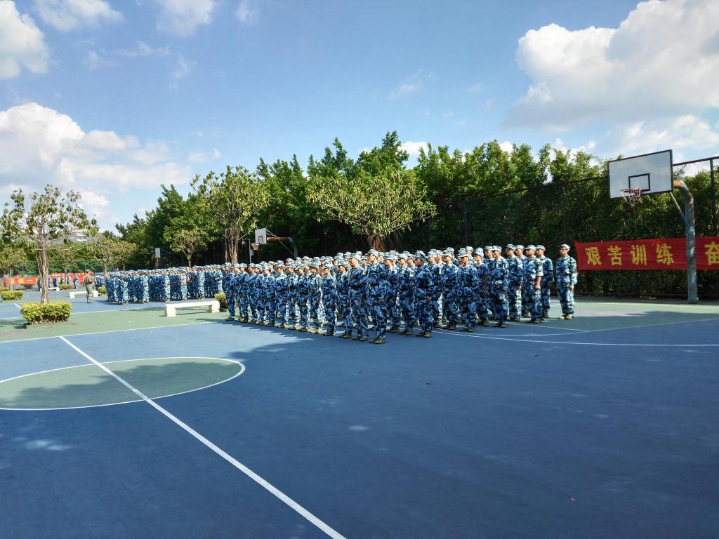 简单的军训动员后,军训正式开始。看!那训练场上整齐的着装;看!那训练场上一致的步伐;看!那训练场上屹立的身影。一个个迷彩方队,组成了一道海蓝色的风景线,让原本空旷的篮球场变得格外的亮眼。太阳也有所改变,仿佛为了让同学们得到更有效的锻炼而变得更加毒辣。同学们顶着烈日,站在方阵中一动不动,任由黄豆般大小的汗珠往下滴。从他们的眼中,能看到的是如同钢铁般坚固而卓绝的坚毅的目光。军训的日子就这样悄然进入到了我们的生活之中,一直陪伴着我们,助我们成长成为更有毅力的新时代大学生。