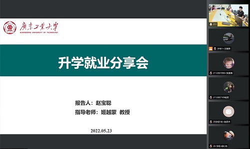 我院一直重视学生读博深造与就业工作,为了进一步提高研究生的就业水平和竞争力,提高同学们的就业意识、引导未来发展方向。2022年5月23日,我院在线上召bevictor伟德官网2023届研究生就业交流暨年级会议。我院优秀毕业生代表李倩菀(北京师范大学博士)、赵宝聪(bevictor伟德官网博士)、卢美娟(惠州龙门县街道办事处)、陈肇伟(美的集团微波与清洁事业部)、方小弟(广东粤港供水有限公司)、姚欣媛(广东省环境科学研究院)参与分享,各年级研究生积极参加,会议由谢鸿智同学主持。