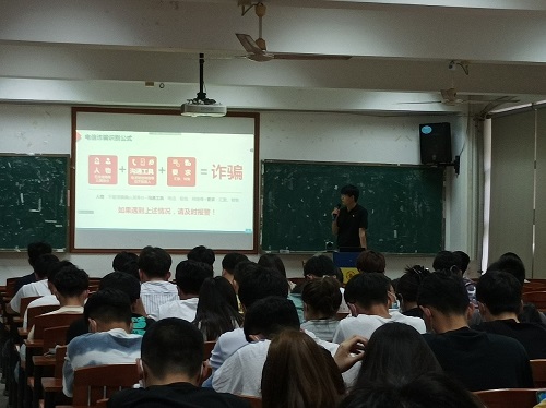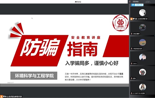 学院辅导员王永周老师从反诈教育、疫情防控及消防安全等方面开展主题教育。王老师列举了“微信发布虚假爱心传递、微信点赞诈骗、电子邮箱诈骗”等常见的48种骗术,并介绍了我院近年发生的电信诈骗案例,总结了防诈骗十守则以及被骗的补救措施,以期提高学生们的警惕意识及鉴别能力,防患于未然。王老师再次强调国家反诈APP和“穗安防诈”的重要性,要求同学们继续利用技术手段为财产安全保驾护航。