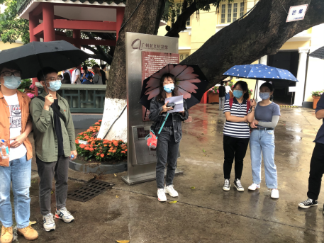 在纪念馆门口,我院许可欢同学为参加活动的同学们讲了一场微党课,介绍了的广州起义的历史背景及纪念馆的由来、建筑风格等。进入馆内,讲解员声情并茂地讲解,带领同学们重温了广州起义的前后历史进程,老师和同学们在回顾革命历史,缅怀革命先烈的同时,被革命先烈在战斗中表现出的临危不惧、不怕牺牲的英雄主义气概深深打动。同学们在参观了广州市自解放以来的风云变化后,纷纷感叹广州从一座废墟中竟焕发出如此惊人的生命力,更蜕变为当今中国面向世界的一面标杆旗帜。其辉煌历史进程时刻鼓舞着我们,也激励着一代代的共产党人,不断前进。