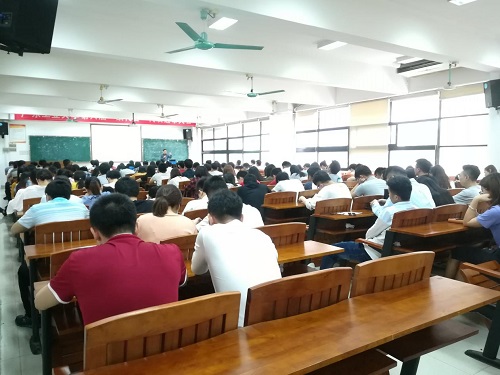 会上,陈处长由十九大和2018全国教育工作会议引入,介绍学校安全的时代背景,强调学校安全的重大意义。接着,陈处长结合校内实验室事故等实际案例,点出意外事故对生活的危害性以及提高学校安全意识的必要性。最后,对校园安全的工作脉络进行梳理,对学生安全的防范重点进行提炼,加深了师生对安全教育内容的印象,提高了本次大会的有效性。