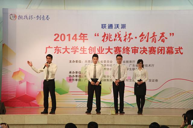 5月18日,在2014年“挑战杯•创青春”广东大学生创业大赛终审决赛中,我院参赛三件学生作品《晓阳生物科技有限责任公司》(参赛学生:何洁鑫、冯晓阳、卢晓琳、李艺晴、李豪妍、田晨昊、张晟剑、何馨杰、罗洁慧、张思苗;指导老师:李彦旭、董誉、庞衍松);《广州市绿穗环保科技有限公司》(参赛学生:李韵捷、张懿文、陆昭怡、谢建群、郑皓俊、陆培琦、林俊鹏、黄鹤俊、罗阳、郑国辉;指导老师:罗建中、黄镰、黎展毅);《广州榕鸟生物科技有限公司》(参赛学生:杨沣、郑志成、陈羽玲、王天丽、陈小露、李锐敬、江华巍、奚冬慧;指导老师:杜青平、黄镰、张军波)摘得3项金奖,金奖数列我校第一,创我院历史新高。
