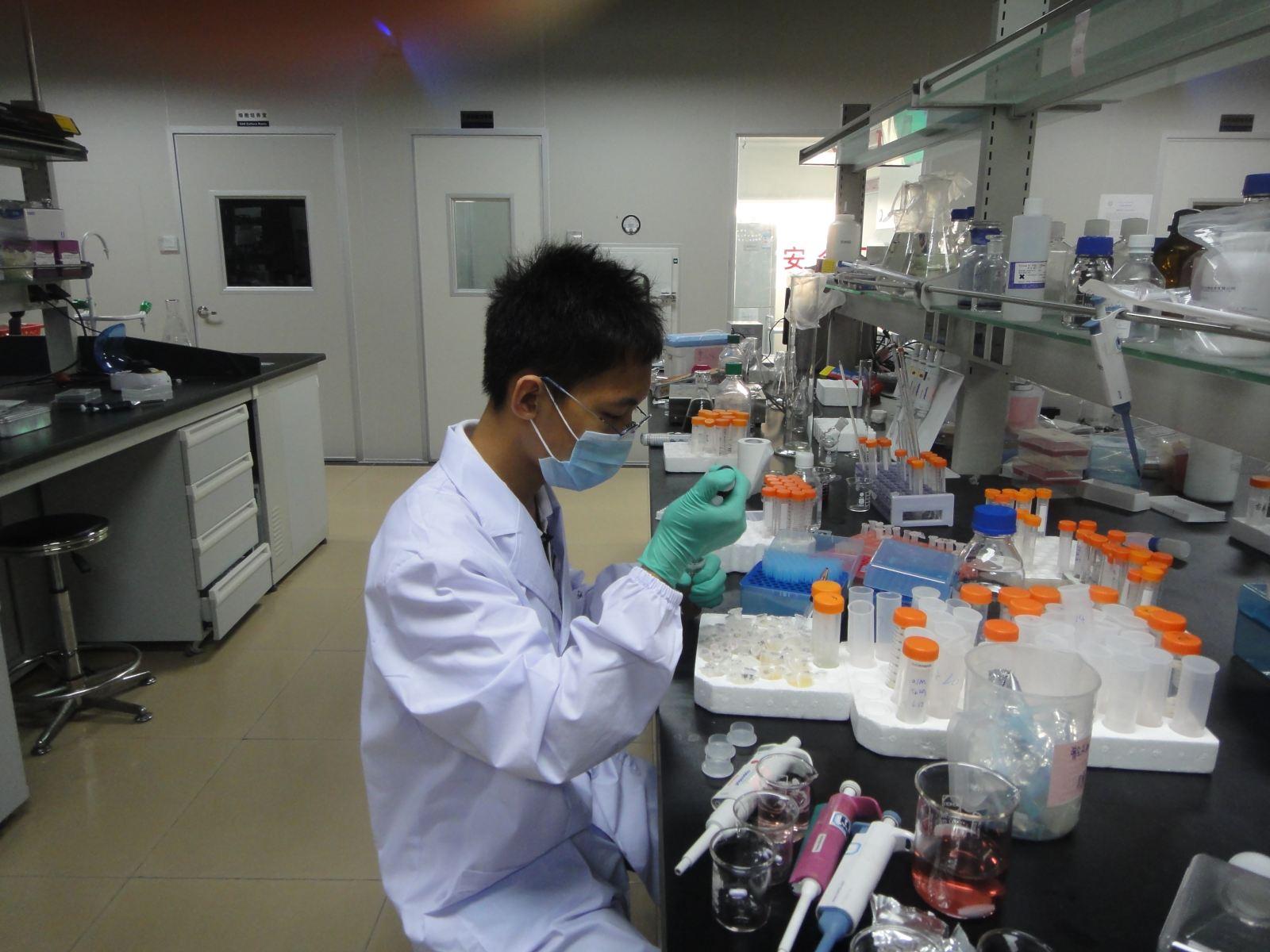 目前社会上食品安全事件频发,特别是猪饲养中添加瘦肉精问题,引发了社会上广泛的关注和担忧,卡世团队从这一社会热点出发,针对目前普遍存在的漏检现象,萌生了研发一种能够快速检测瘦肉精的四联检测的设想。团队技术核心冯晓阳同学利用自己的专业知识,积极向相关专家学者讨教学习,得到了中科院广州生物医药与健康研究院曾令文专家的指导。为了能够早日研发出四联检测技术,团队成员每天都在实验室加班加点,熬过了几个通宵。经过坚持不懈研究和努力,最终成功地突破了瘦肉精检测的技术难关。目前,团队研发的瘦肉精四联检测技术,只需在检测卡滴液处滴加待测液3分钟左右即可呈现结果,最低检测限度可达5ppb以下,十分利于推广使用。并获得了国家专利,专利号是:201110039923.4。