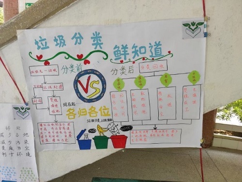 在经过几天精心的海报绘制工作之后,实践队就如何对垃圾进行分类及事后处理进行了摆摊宣传,并为在场的村民积极解答相关疑问。此外,“关爱生命安全”的主题海报也同时展出宣传。