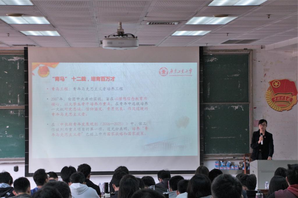 校团委王亚煦副书记为我们做第二讲,课程以青年马克思主义者要姓马,信马和行马三个方面展开。首先是姓马,王书记指出青年马克思主义者要姓马,就是要坚持学习和相信马克思主义。紧接着,王书记结合社会上的反面教材,为同学们讲述了马克思主义的魅力所在,强调大家要信马。最后,王书记呼吁时下青年要践行马克思主义,把奋斗作为践行信仰的最好途径。