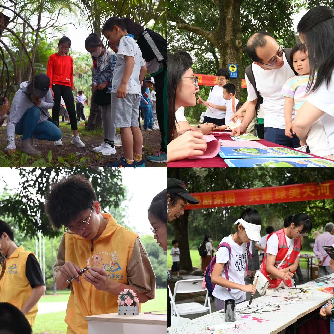活动中,党员志愿者通过科普闯关问答增强市民对资源节约、环境保护的了解,提高环保意识;利用树枝、落叶、花瓣与市民共同制作环保用品,体悟“尊重自然、顺应自然”的理念;引导市民用环保颜料共绘“十米画卷”,共谱绿美愿景。