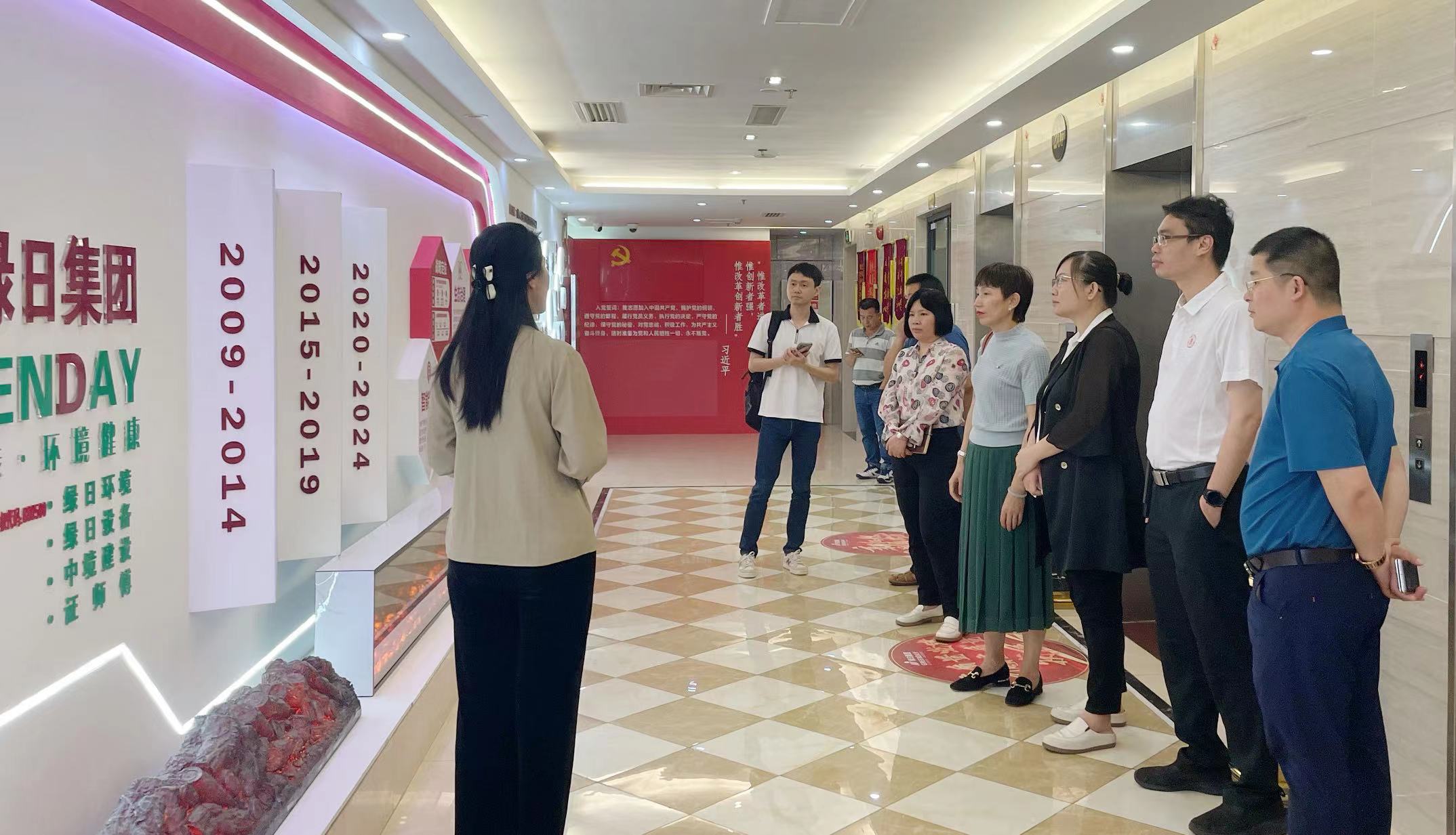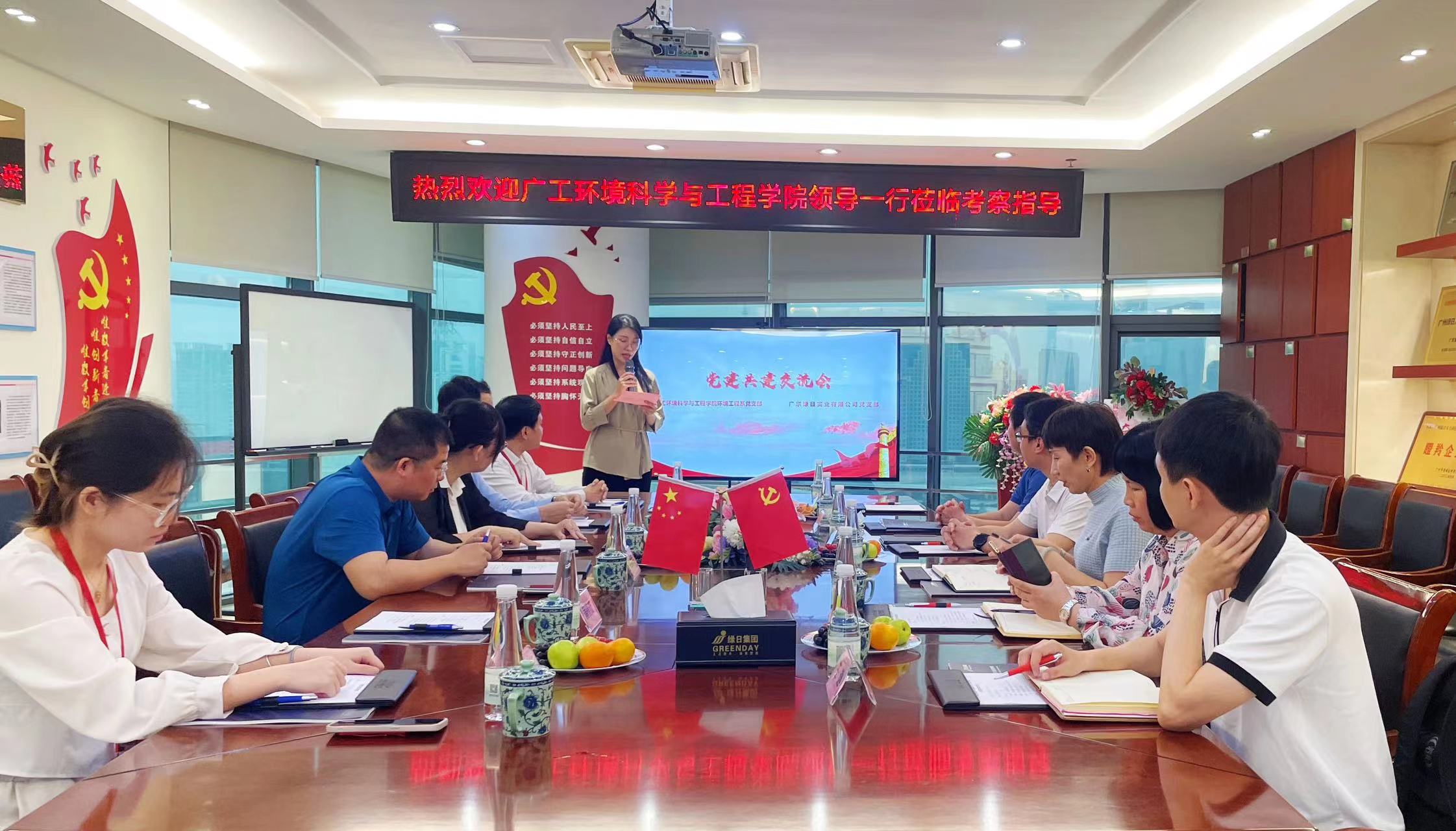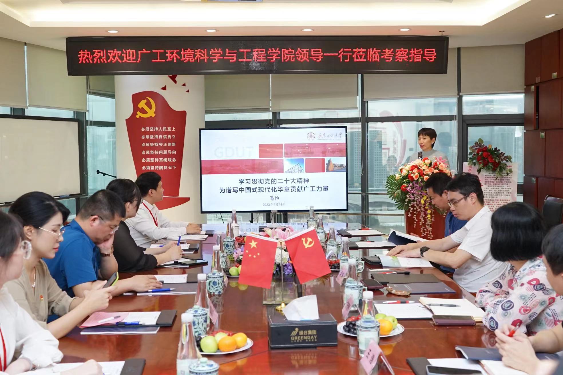 在绿日集团董事长毛淦民、总经理朱钟霞等领导的陪同下,学院一行参观了公司的党建园地和办公场所。参观调研后,绿日集团党支部党员蒲倩茹简要介绍了公司的基本概况、发展历程、主营业务、支部建设等方面。葛畅书记以《学习贯彻党的二十大精神——为谱写中国式现代化华章贡献广工力量》为主题,从党的二十大精神的丰富内涵、中国式现代化建设的机遇和挑战、为中国式现代化贡献广工力量三个方面开讲。双方支部就如何进一步以党建引领促进校企事业发展、如何优化党建共建形式和内容、如何实现高质量建设等问题进行了深入的探讨。