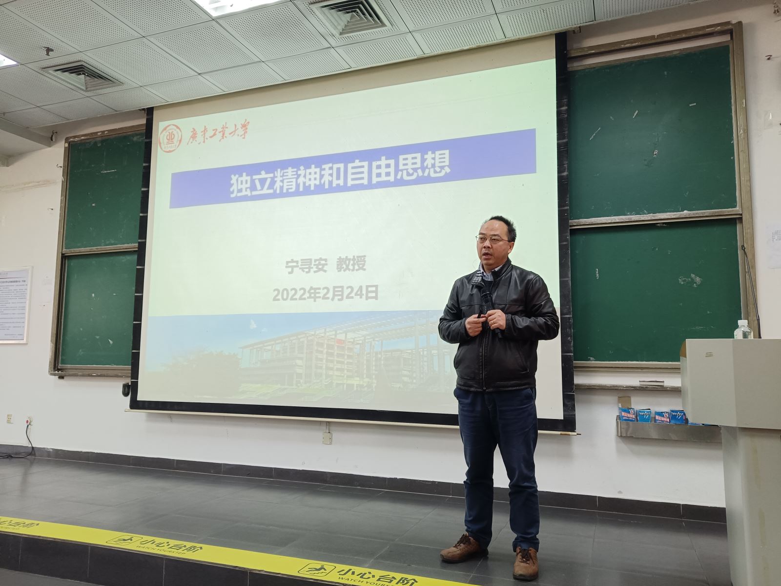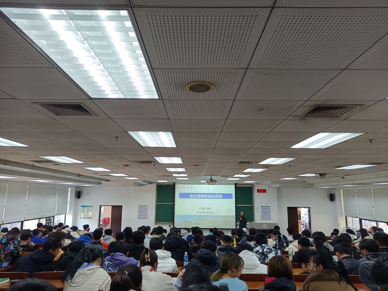 为传承中华优秀传统文化,加强学生文化自信,培养学生爱国主义精神与批判性思维能力,2月24日下午,学院院长宁寻安为我院21级学生开展主题为“独立精神和自由思想”的思政课。 宁寻安院长首先强调了学习中华优秀传统文化的重要性,其蕴含的思想观念、人文精神等有助于学生培养正确的国家观、民族观,增强学生的家国认同;随后,宁寻安院长介绍了“独立精神和自由思想”的代表人物陈寅格和王国维生平事迹,阐明了其命运的局限性,提出要站在历史发展和国家、民族命运的视角审视个人发展,以辩证唯物主义的历史发展观来看待问题,并勉励师生以社会需求、国家大政方针和党的工作重点作为个人工作的努力方向。最后,宁寻安院长介绍了学生拥有批评性思维的重要性,其是学生冲破盲从,进行独立思考的前提以及学术研究的必备条件,并就学生如何培养批判性思维提供了方法论思考。 宁寻安院长思政课引用了明末清初女诗人柳如是、史学大师陈寅恪和国学大师王国维人物生平事迹以及古今中外关于批评性思维的起源著说,案例丰富,语言通俗易通,以时代发展的角度向同学们强调了科学研究要冲破盲从与真正独立思考的重要性,并寄语学生成为有独立思考和辨识能力的人,做好专业学习和研究,不负大学时光。