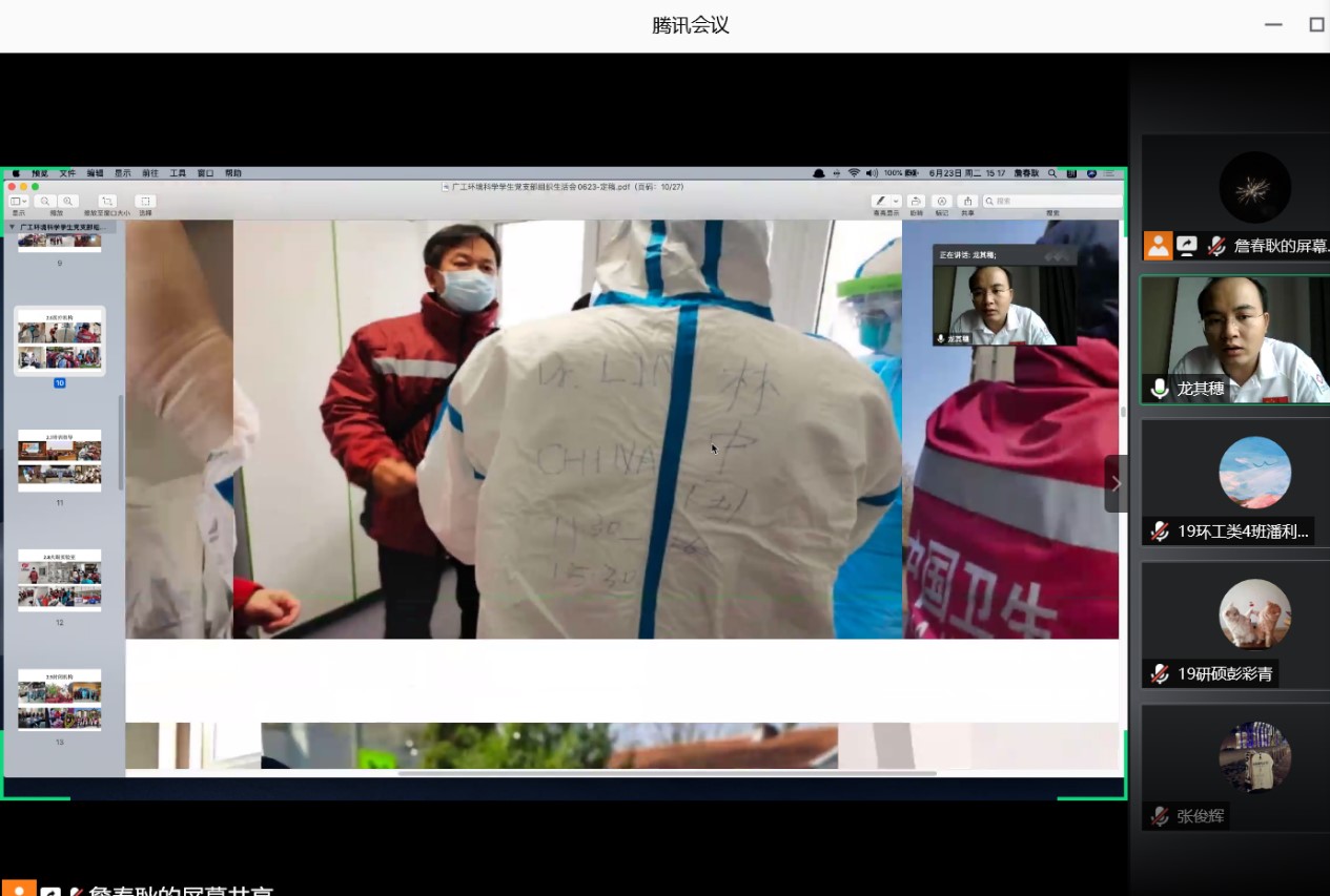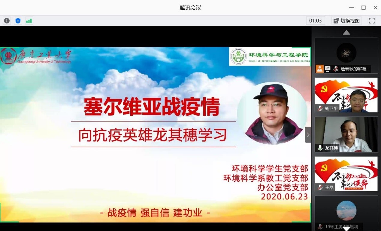 6月23日下午,中国援助塞尔维亚抗疫医疗专家组成员、广东省疾控中心艾滋病预防控制一级主任科员龙其穗做客bevictor伟德官网知行讲坛分享海外战疫经历与感受。环境科学学生党支部联合环境科学系教工党支部、办公室党支部和机电工程学院制造工程系第一党支部举行七一主题党日活动。学院党委书记杨卫平、计生办主任陈蓝、各党支部书记、全体党员和发展对象在腾讯会议参加学习。
