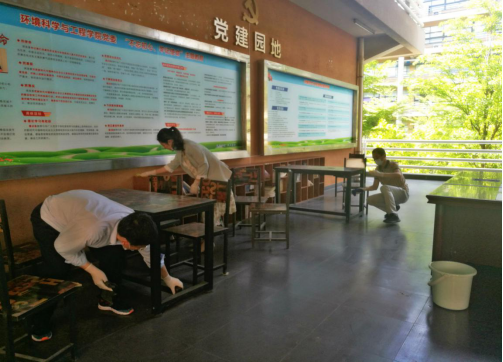劳动,是共产党员保持政治本色的重要途径,组织生活进入到尾声,支部全体党员在工三党建园地和办公场所进行了劳动实践,开展卫生清理和消杀,身体力行传播诚实劳动,勤勉工作的劳动观念,为教职工恢复正常工作秩序和毕业生返校工作做好准备。