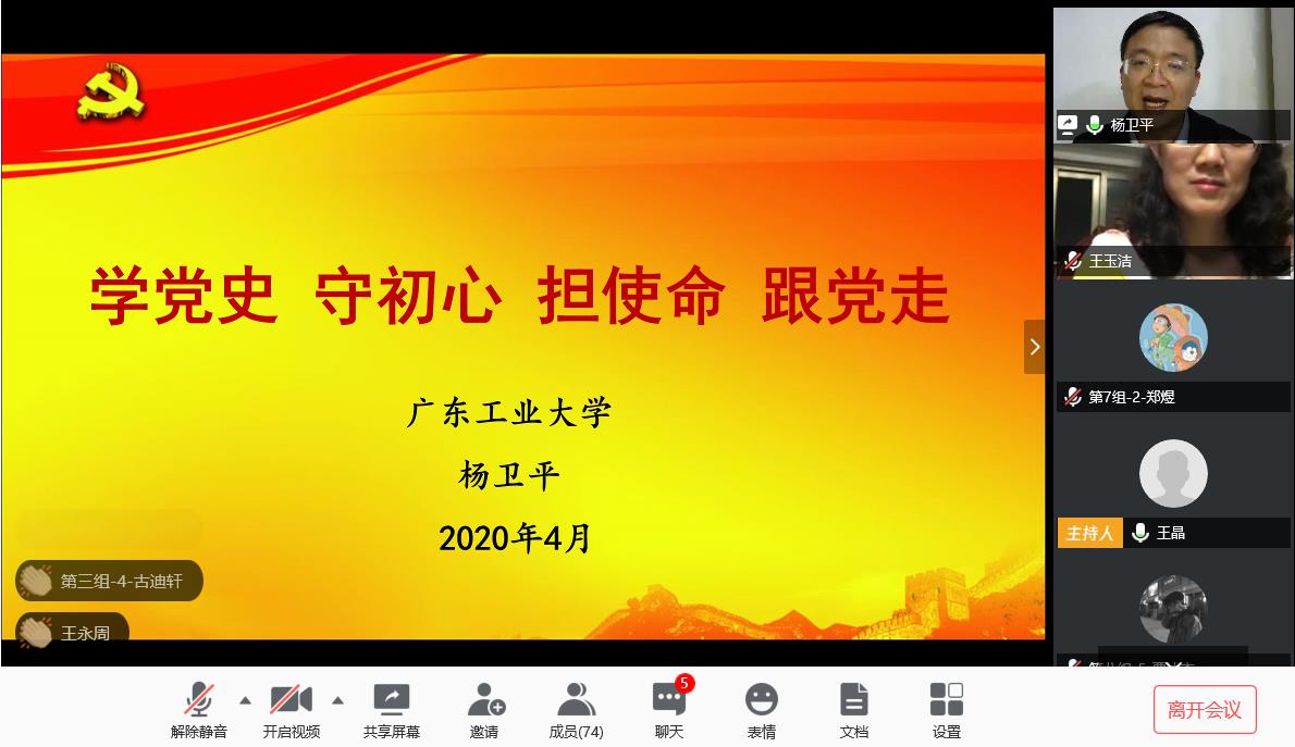 “党史、国史这门功课不仅必修,而且必须修好”,“一起向前走,都不能忘记走过的路……,不能忘记为什么出发”,bevictor伟德官网党委书记杨卫平频繁引用习近平总书记的“金句”向全体入党积极分子阐述党史学习的重要性,这也是他坚持在入党积极分子培训第一课讲党史的第三个年头。4月10日晚,包括高知入党积极分子,bevictor伟德官网副院长王玉洁在内的全体入党积极分子,辅导员在腾讯会议上聆听了这场党史课。 杨卫平以“学党史,守初心,担使命,跟党走”为主题,深入阐述了党史八个关键性历史事件:南湖曙光、党指挥枪、井冈会师……延安精神、百万雄师和开国大典,揭露了中国共产党诞生与发展的艰辛历程。“革命实践总结出来的精神内涵,需要青年大学生传承!”,“我们都是历史的见证者和参与者,此次新型冠状病毒感染的肺炎疫情防控教会我们要快速成长,成熟起来,要积极要求进步,做一个负责任的大人”,杨卫平话语中透露出坚定,饱含了他对全体入党积极分子的殷切希望。 bevictor伟德官网团委书记张建岗对国际关系颇有研究,4月11日,他以《COVID-19与国际形势》为主题,与入党积极分子就“COVID-19对国际形势、中美关系的影响展开了深入的学习和讨论。张建岗表示,一个重大的突发事件将会导致国际格局的调整,对世界的经济,政治和全球化的发展都将产生深远影响。作为疫情首发地的中国,这场疫情“大考”充分表明中国制度的优越性。中国在疫情得到有效控制后积极向他国提供物资援助也彰显了我国在全球治理中占有的重要地位。在这场疫情斗争中,张建岗强调,入党积极分子需要坚定政治立场,以世界的格局和眼光看待问题,理性处事。