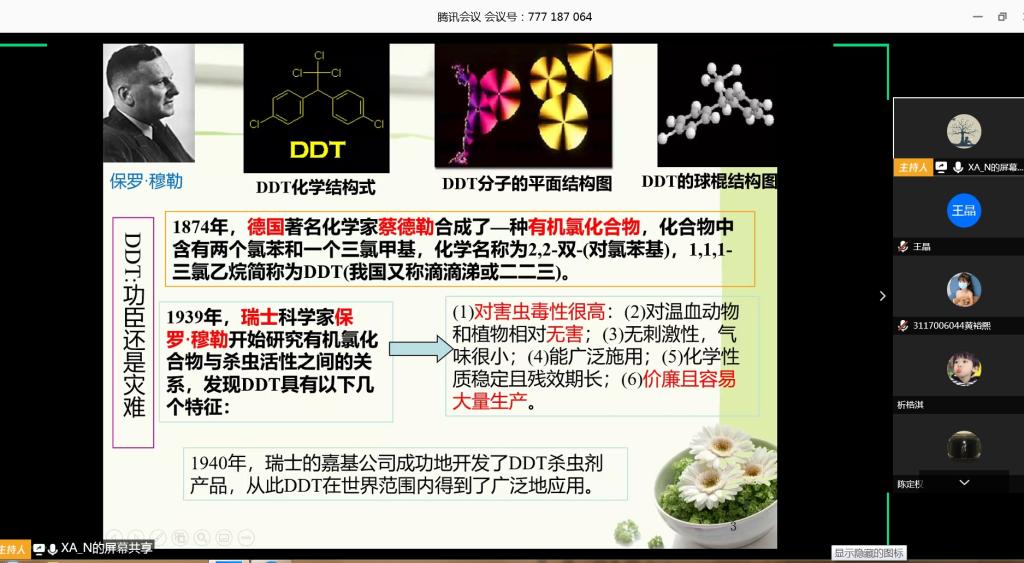 随后,围绕着“功利性与环境影响”这个话题,宁院长通过科普有机氯类农药DDT的发展机遇、认识过程、环境危害以及导致环境健康等问题,通过讲述经典反面科学案例,启迪学生思考功利性与科学的关系:科学一定合理吗?宁院长认为,追求功利性要从长期利益出发,符合环境要求;其实,功利性不得以牺牲环境质量获取;第三,权衡功利性及其对环境造成的危害,实现二者的平衡才更有利于人类发展。正如习近平总书记指出的,“在生态环境保护上,一定要树立大局观、长远观、整体观,不能因小失大、顾此失彼、寅吃卯粮、急功近利”,点明了学生在科学研究道路上要有更高层次的科研要求以及承担青年环保卫士使命。