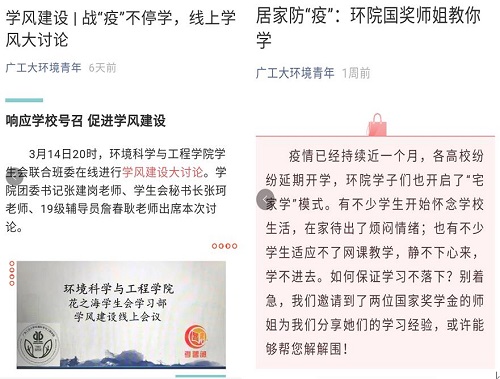 疫情当前,我院学生在做好自我防护的情况下,积极参与到当地的疫情防控工作中,2017级安全工程专业黄鑫宝做到了“疫情当前,总要做点什么实事”的青年担当,2019级环境科学与工程(4)班的关杰威发出了“社会责任感是每个大学生最朴素的情感!”的号召,2017级环境工程(2)班班长蔡小莉积极响应学校团委关于“云上课业辅导”抗疫一线子女的志愿守护计划,与广州抗击疫情一线警察子女结对进行心理帮扶和学业帮扶,得到了家长的认可和赞许。