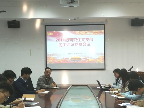 党支部书记符待君带领全体党员进行民主测评开展批评与自我批评,全体党员依次上台进行客观的个人情况汇报及严肃的自我批评,党员们根据平时表现及发言内容对正式党员进行现场民主评分。会上发现本支部研究生党员普遍存在理论学习不够及政治素养不高;时间规划不合理及沟通障碍;科研学习与锻炼体质欠协调;批评与自我批评不足等问题。