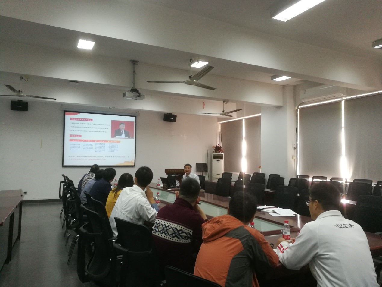 11月19日上午,我院党委理论学习中心组在工3-209举行全会精神学习会。学院党委书记杨卫平同志对党的十九届四中全会精神进行了系统阐述和深入解读,深入学习决定内容。杨书记提到,党的十九届四中全会是在庆祝新中国成立70周年之际,实现中华民族伟大复兴的关键时期召开的一次具有开创性、里程碑意义的会议。杨书记号召全院党员同志要将认真学习贯彻党的十九届四中全会精神作为一项重要政治任务摆上重要位置,坚持以习近平新时代中国特色社会主义思想总揽我院工作全局,以环境工程认证建设为契机提高立德树人成效,确保我院教学和科研工作更上一层楼,为粤港澳大湾区建设贡献广工大力量。