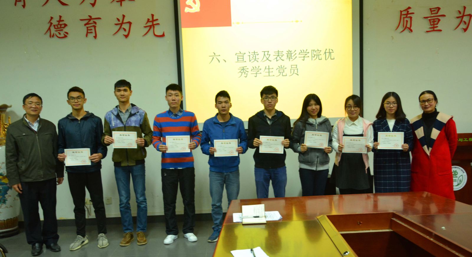 为总结经验,表彰典型,2016年12月15日下午,我院在工学三号馆209会议室召开2015年示范党支部、示范党员总结暨学院优秀学生党员表彰大会。学院党委杨卫平书记,陈蓝副书记,团委书记、党建组织员庞衍松老师,学院辅导员崔晓娥老师、胡涛老师和所有学生党员参加大会。