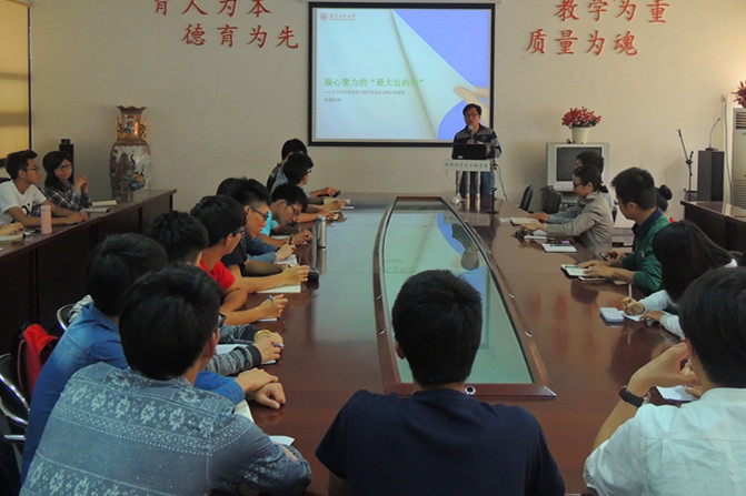 4月21日下午4:30分,我院在工学三号馆209室开展了“知行讲坛第三讲暨青马工程培训”活动,活动邀请了校党委委员、校党委办公室谢冠华主任给同学们做了《凝心聚力的“最大公约数” ——与大学生谈弘扬与践行社会主义核心价值观》的专题讲座,学院党委副书记陈蓝、各年级辅导员、学生党员和主要团学干部参加此次学习。