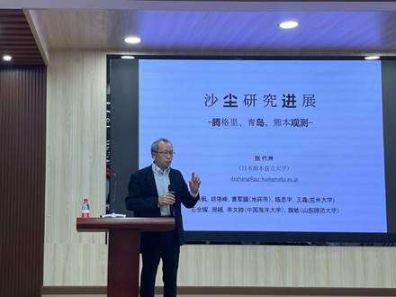 讲座伊始,张代洲教授以他与安太成教授共同访问腾格里沙漠的经历为引子,引入了本次讲座的主题《沙尘研究进展——腾格里、青岛、熊本观测》。张教授通过详实的数据和生动的例子,向在场师生介绍了其团队在中国腾格里沙漠、沿海城市青岛以及日本熊本等地开展的一系列沙尘观测研究工作。研究团队利用实地考察、实验室分析和数值模拟等多种方法,深入探讨了沙尘的产生、传输、物理化学性质及其对气候和环境的影响。张教授还分享了团队在沙尘研究中取得的一些重要成果,包括沙尘长距离传输模式模拟的意外结果——非洲沙尘在印度和北美造成了降雨增强,以及沙尘中硝酸盐、硫酸盐等化学成分的含量和分布特征等。这些成果不仅丰富了我们对沙尘的认识,也为制定有效的沙尘防控策略提供了科学依据。